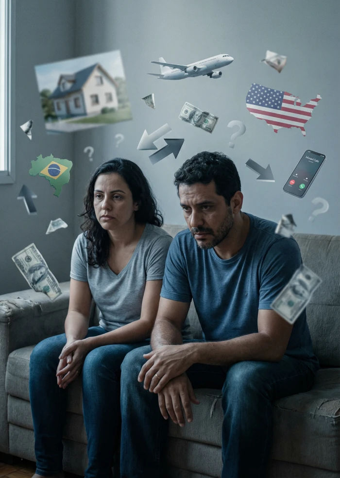 Vê outros brasileiros indo, se virando, e sente que sua vida está parada enquanto a deles anda.