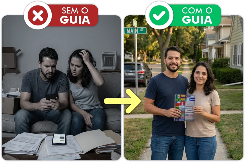 Toda essa experiência virou um Guia Prático, criado para ajudar brasileiros a chegarem mais preparados, economizarem dinheiro e evitarem erros que cerca de 99% dos brasileiros comentem no seu primeiro mês.